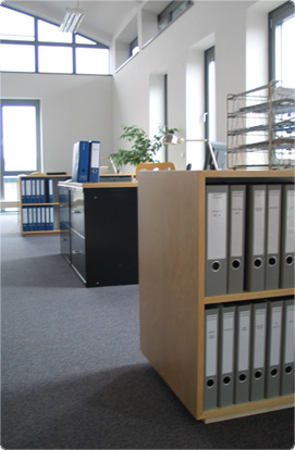 Arbeitsplätze, Aktenregale und Empfangstresen für eine Wirtschaftskanzlei Inneneinrichtung, Dresden, 2003 / 2005